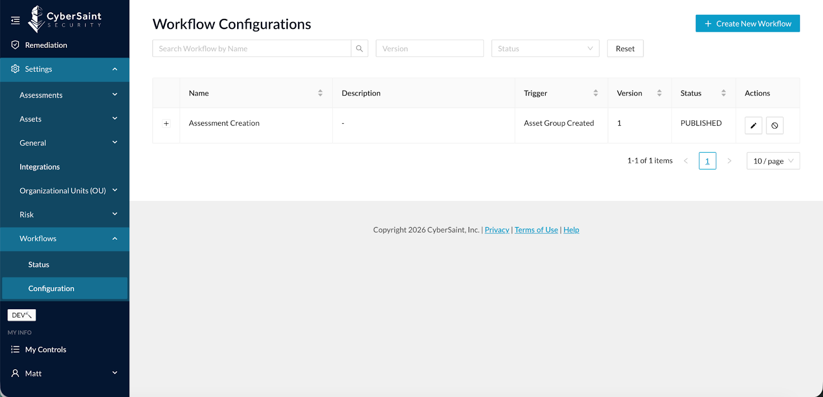 - Using the previously released Onboarding Form and this new workflow capability, clients can allow others to automatically create an Asset Group and its corresponding Assessment with the platform without any user interaction.